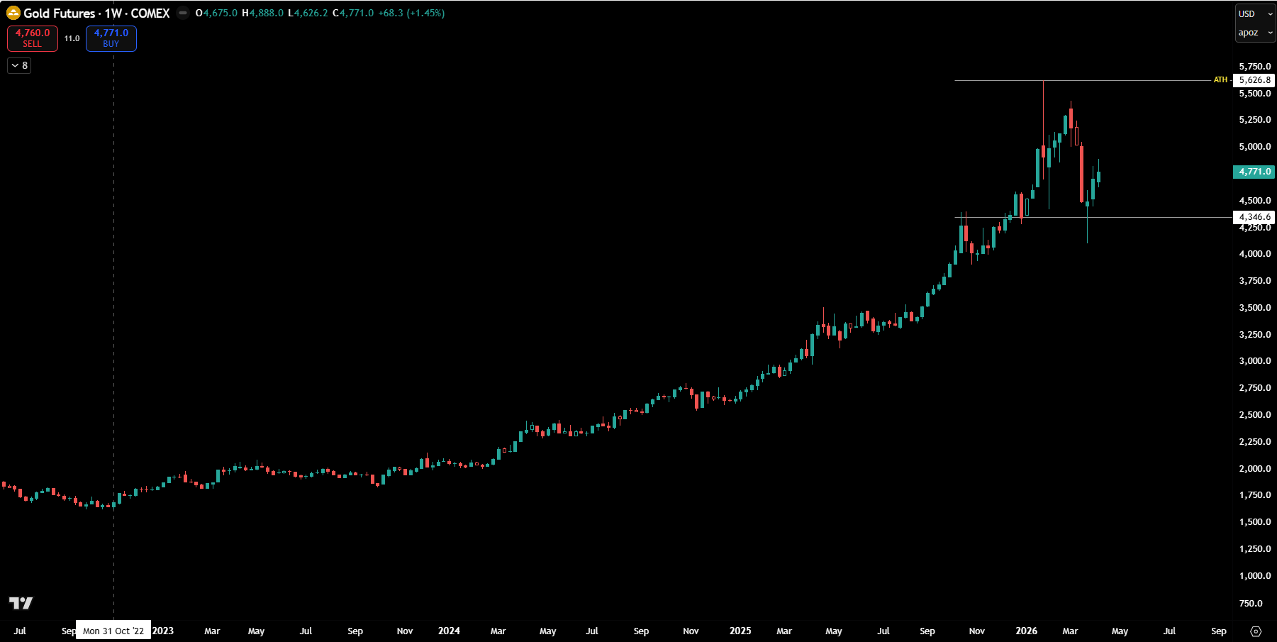 Gold has risen 4000 points since Oct 2022, this is it's first major pullback since then.